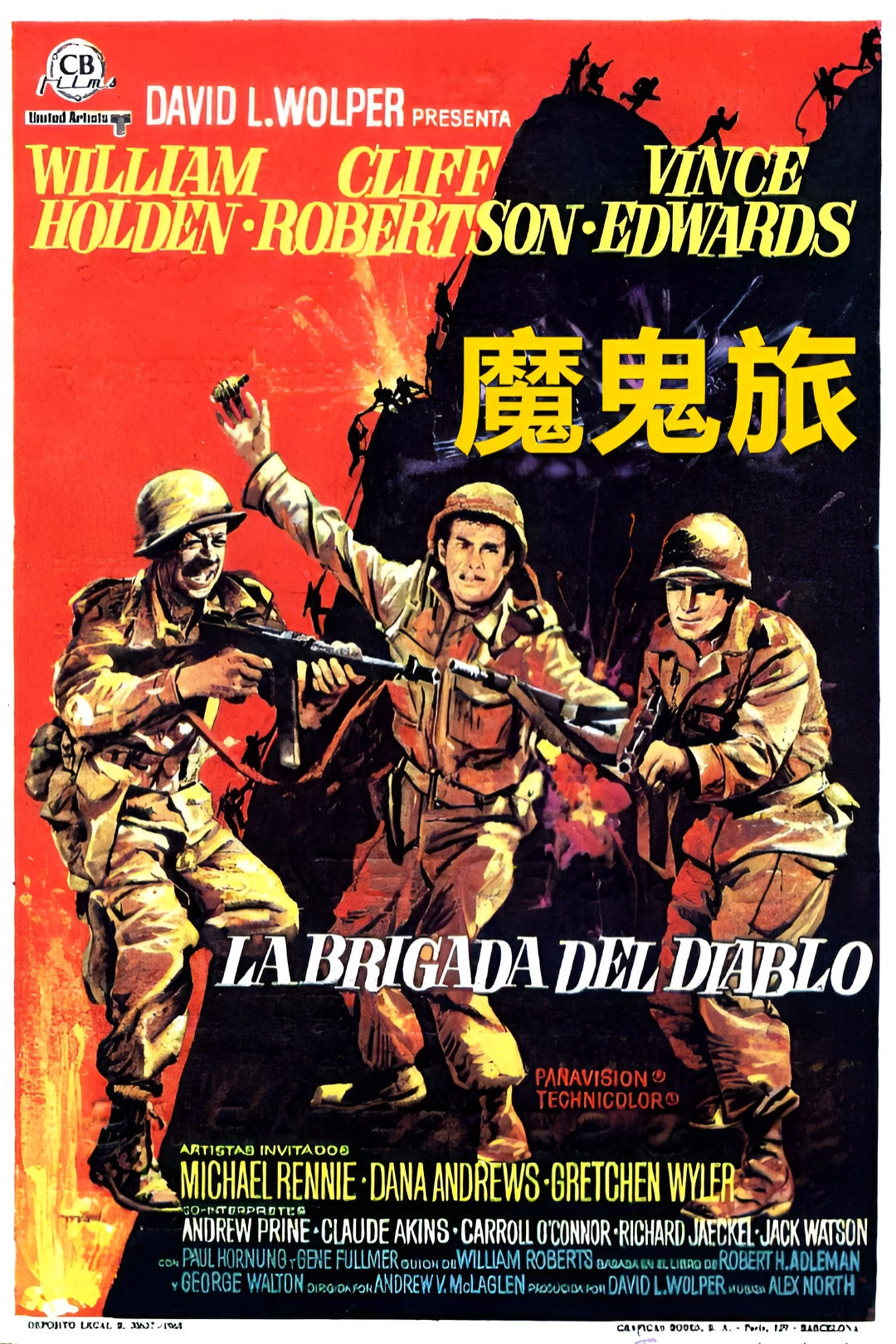 导演: 安德鲁·麦克拉格伦 编剧: 威廉·罗伯茨 / 罗伯特·H·阿德尔曼 主演: 威廉·霍尔登 / 克里夫·罗伯逊 / 文斯·爱德华兹 / 安德鲁·普莱尼 / 杰里米·斯莱特 / 更多... 类型: 剧情 / 动作 / 战争 制片国家/地区: 美国 语言: 英语 / 德语 上映日期: 1968-08-02(英国) 片长: 130分钟 又名: 无敌雄师(港) / 魔鬼兵团(台) / 奇兵妙着破天关(港) / 魔鬼军团 / 魔鬼军队 IMDb: tt0062886 剧情简介 这支特种部队在二战历史上只是昙花一现,虽然绽放只在刹那,却是那么鲜艳。其深远意义直接影响到战后美军特种部队的发展。岁月流淌,当人们乐此不疲地去揭秘一支支二战特种部队时,却鲜有人将沉睡的“魔鬼”从厚重的 历史中唤醒……。二战后期,美国陆军上校费雷德里克组建了一支美国与加拿大联合作战旅。这支部队并非人们容易想到的是一支军方部队,而是一支敌后游击部队。