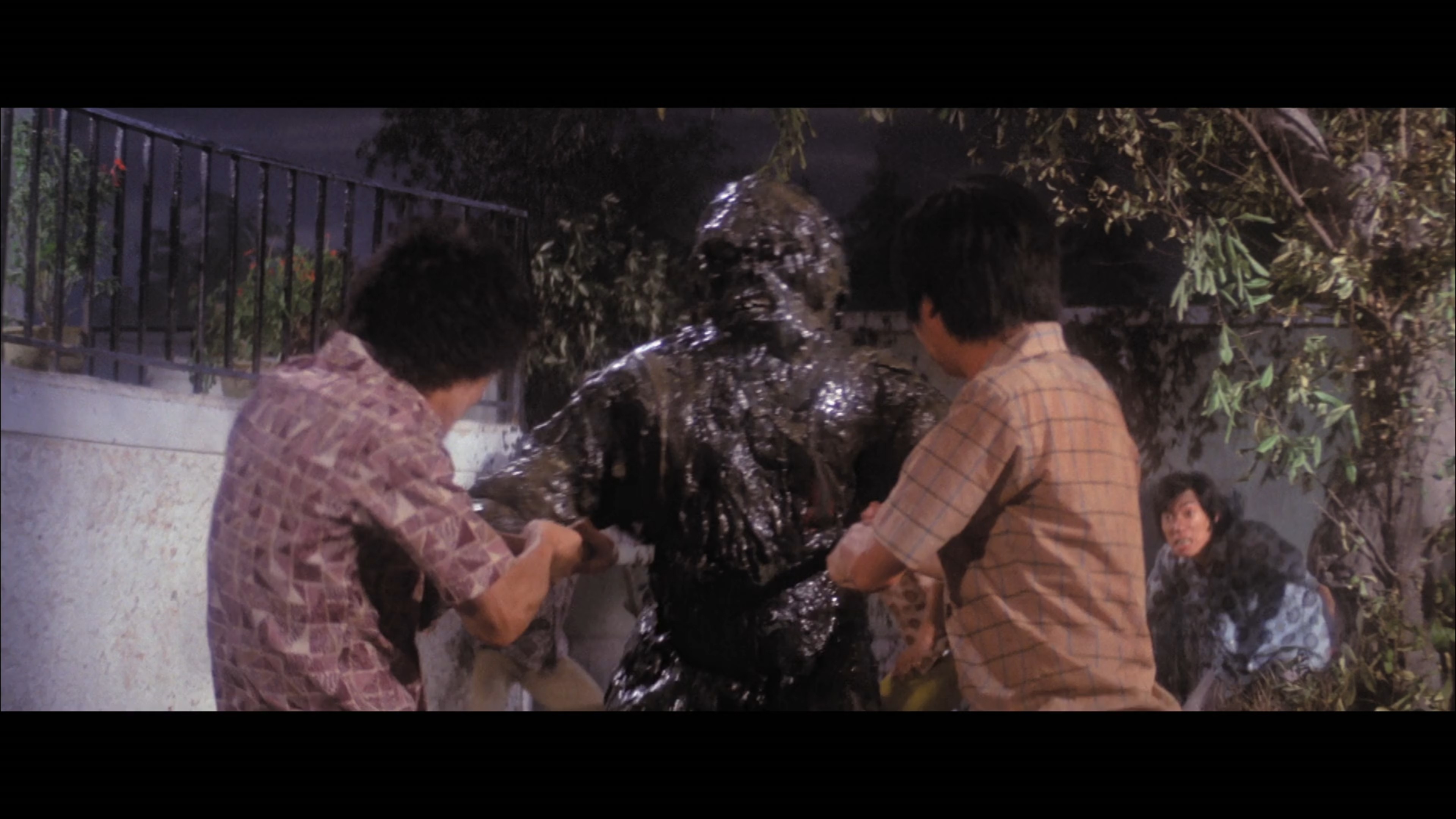 ◎名 称: 油鬼子 ◎豆瓣评分: 5.7分 (共3184人参与评分) ◎导 演: 何梦华 ◎编 剧: 蔡澜 ◎产 地: 中国香港 ◎主 演: 李修贤 / 陈萍 / 李丽丽 ◎年 代: 1976 ◎片 长: 88分钟 英版蓝光压制 完整版 (1:27:48) ◎又 名: The Oily Maniac / 油降 ◎语 言: 国语 ◎类 型: 恐怖 ===== ◎简 介 ===== 本片由蔡澜编剧,何梦华导演在南洋拍摄的灵异电影。故事发生在南洋,青年沈元的亡父与林亚峇为生死之交。沈父曾在林的背上刺有神秘图案;后林为保护女儿中月而杀了人,被判死刑。林被处死前,让沈把图案描下,此图案实际是一道有特殊功能的符。按图文指示,就会变成威力无穷的油鬼子;沈元变作油鬼子后,救了心仪女子亦杀了不少坏人,但最后却陷入疯狂状态…… 影片截图