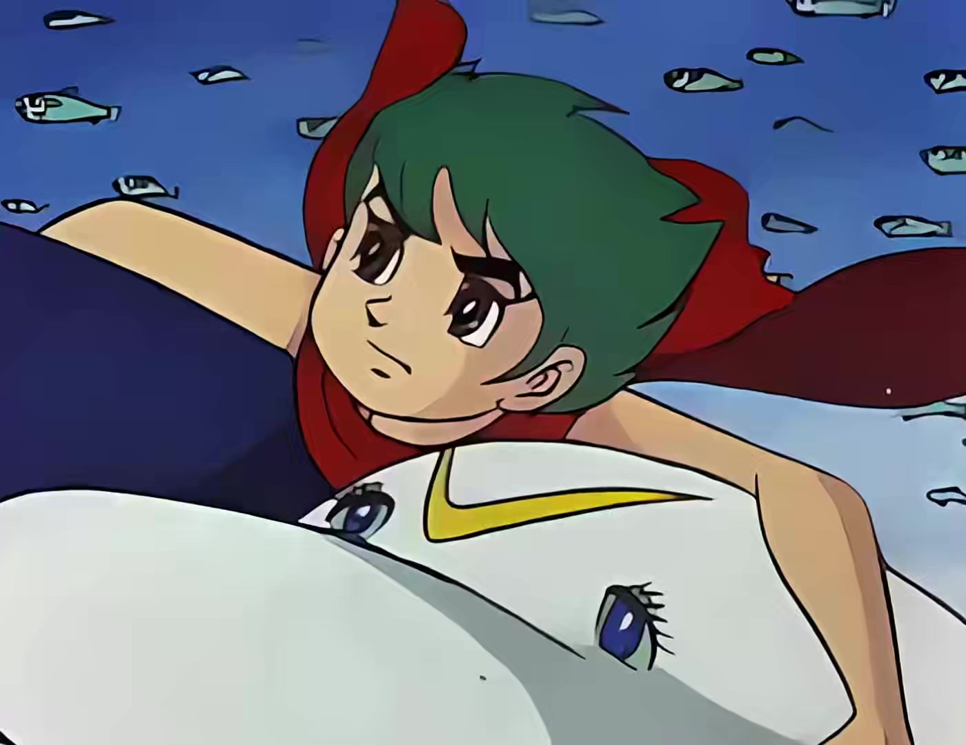 距今约5000年前,云集着智者和贤达的神秘之岛亚特兰大陆一夜之间沉没。大西洋底的波塞冬族向亚特兰大陆的飞龙族发起进攻,在强大邪恶的攻势之下,飞龙族彻底覆灭。飞龙族首领将其尚在襁褓中的儿子托付给白海豚露卡(北浜晴子 音),露卡把婴儿藏到日本海附近的猪首岬岩洞中。最终,好心的渔夫一平(八奈見乗児 音)发现了婴儿,将其带回家抚养。13年后,阿龙(塩屋翼 音)已经成长一个少年。是时村中遭到海怪袭击,阿龙在露卡的引导下找到海龟梅顿,终于从它的口中得知自己的身世。一曾迷惑的阿龙最终选择披上红色披风,拿起短剑,和露卡向着波塞冬族占领的大西洋进发……