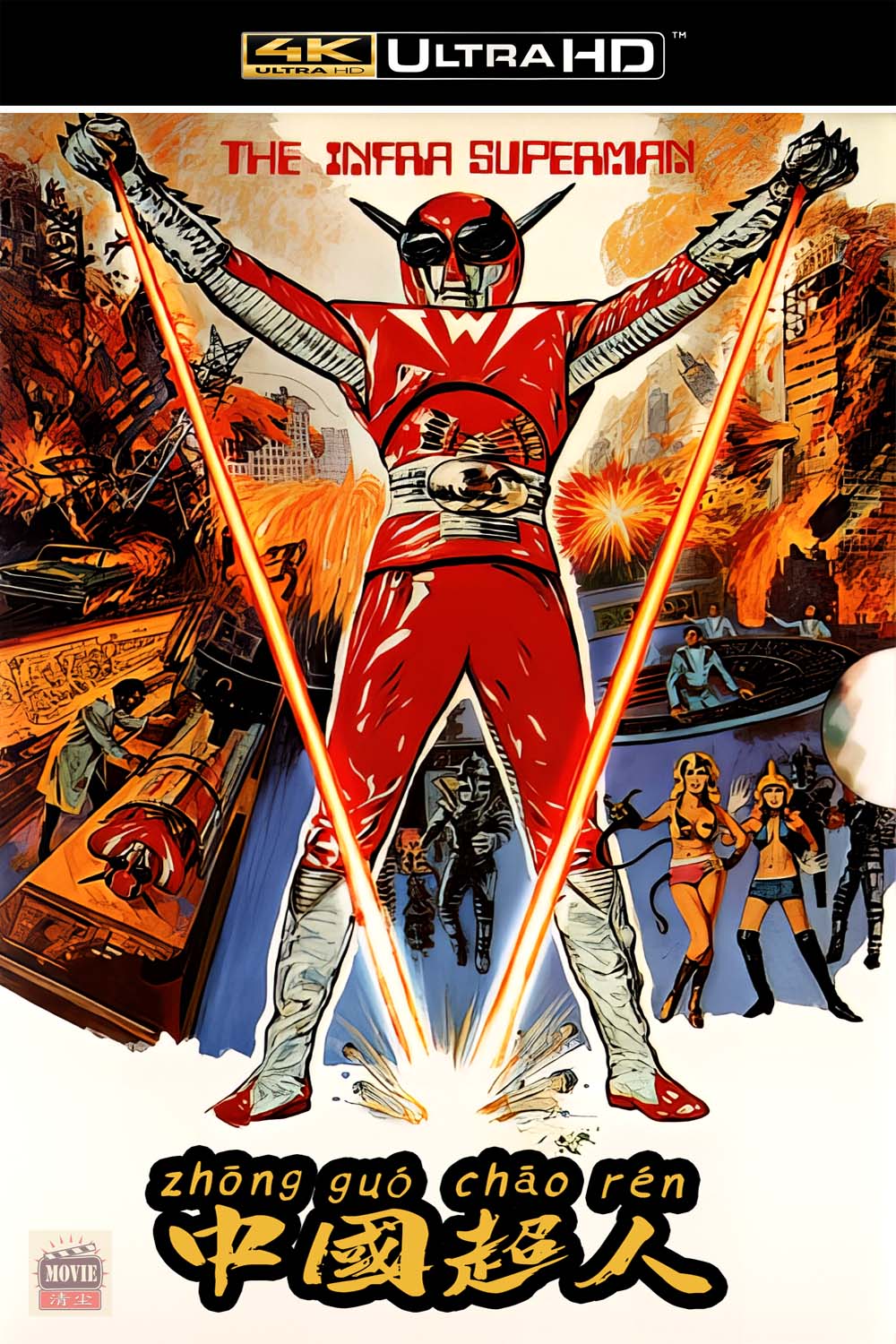 中国超人 1975 这部中国版假面骑士豆瓣评分5.9,国外烂番茄竟然满分,果然中外对事物的审美还是有差异的,本人对这类皮套类电影不感兴趣,只是今天刷到编剧雷神介绍这部电影,导演佩顿.里德执导的漫威电影蚁人的视觉设计竟然是受到了这部电影的启发,正所谓爱屋及乌,萝卜青菜,各有所爱吧,推荐给喜欢此类型电影的朋友吧 ◎名 称: 中国超人 ◎豆瓣评分: 5.9分 ◎导 演: 华山 ◎编 剧: 倪匡 ◎产 地: 中国香港 ◎主 演: 李修贤 / 王侠 / 袁曼姿 ◎年 代: 1975 ◎片 长: Germany: 80 分钟 / USA: 90 分钟 / Hong Kong: 88 分钟 ◎又 名: The Super Inframan ◎语 言: 国语/粤语 ◎类 型: 动作 / 科幻 ———— 简 介 ———— 城市突然遭遇大规模的袭击,陷入了一片火海之中。科学研究所的刘英德所长临危受命,排查灾难原因,在调查死火山的地震时获得冰河魔主发来的威胁信息:狂妄自大的魔主要全人类俯首称臣,否则将给予人类毁灭。各方汇聚商讨对策,原来冰河魔主和一班仆从是冰河时代人类的残留,他们的特殊体质意味着强大的破坏力。刘所长随即安排研究员雷马(李修贤 饰)进行人体改造,以期成为战无不胜的中国超人对抗魔主。冰河魔主先下手为强,派遣精锐怪物袭击研究所,千钧一发之际,雷马的超人改造获得成功,将怪物击退。但是魔主此役将一名研究员改造成了自己的间谍,雷马和众研究员在魔主的内外夹攻中展开了捍卫人类的战斗…… 影片截图: