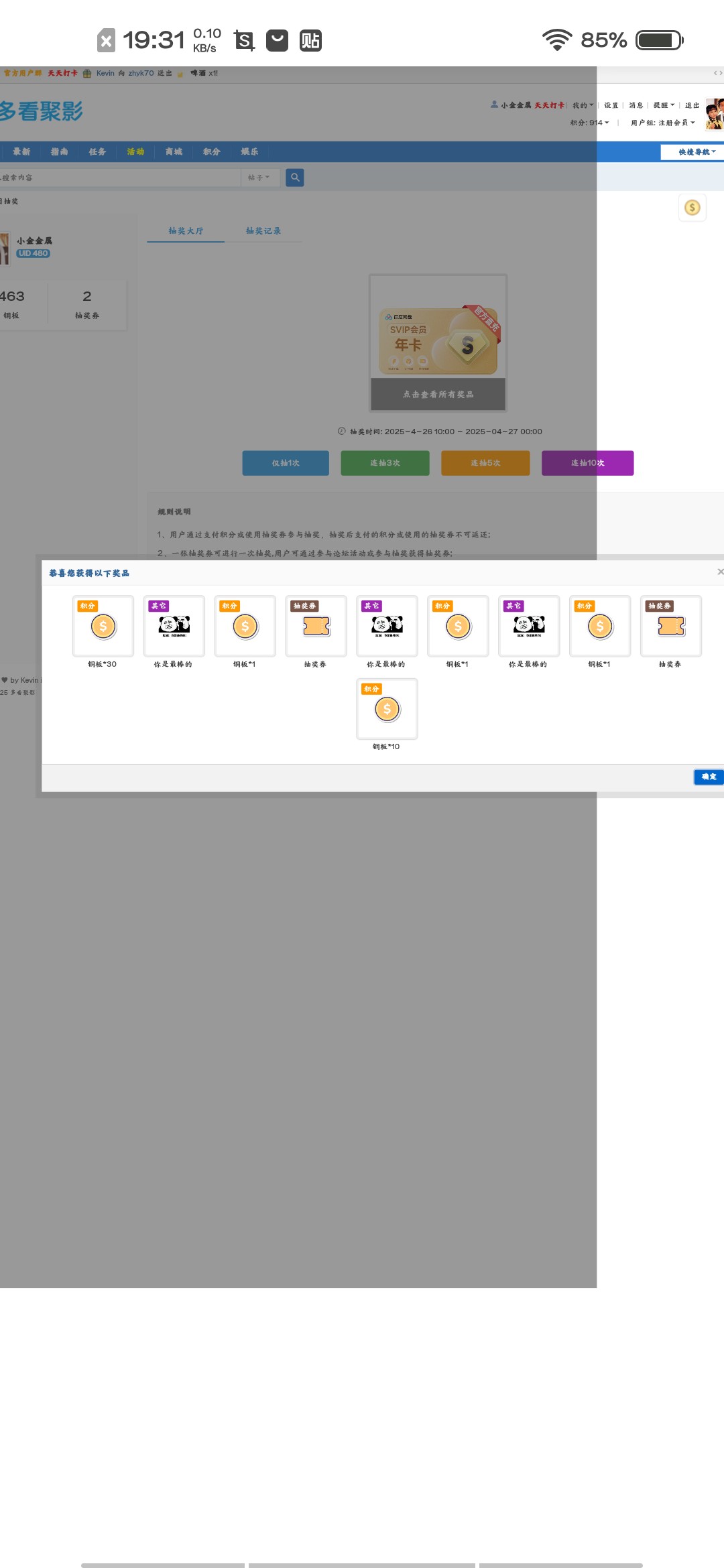 小金金属 发表于 2025-4-26 19:35 二次抽奖记录截图。